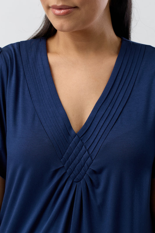 DIAMOND PLEAT NIGHTIE NAVY - Y346PL