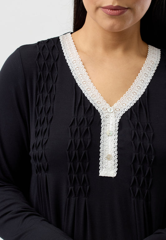 LACE SMOCKING NIGHTIE BLACK - Y330PL