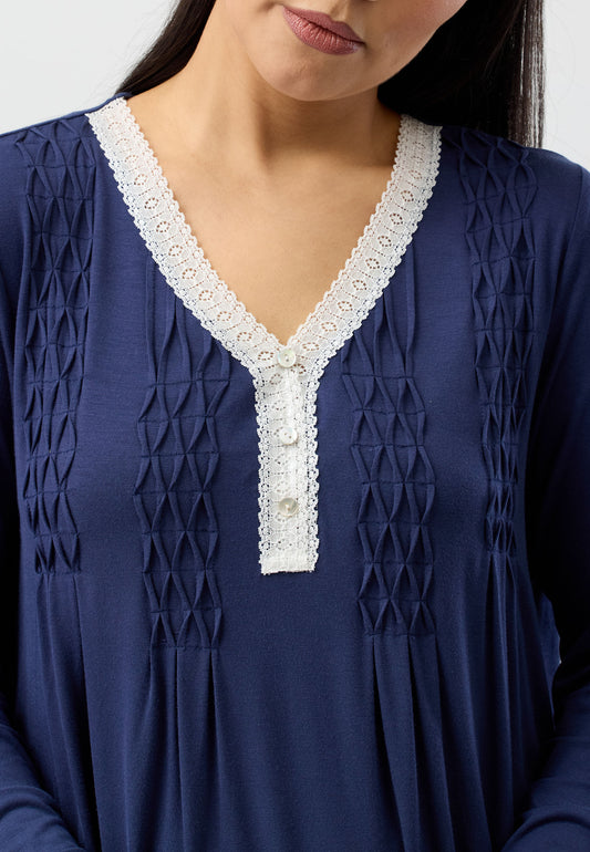 LACE SMOCKING NIGHTIE NAVY - Y330PL