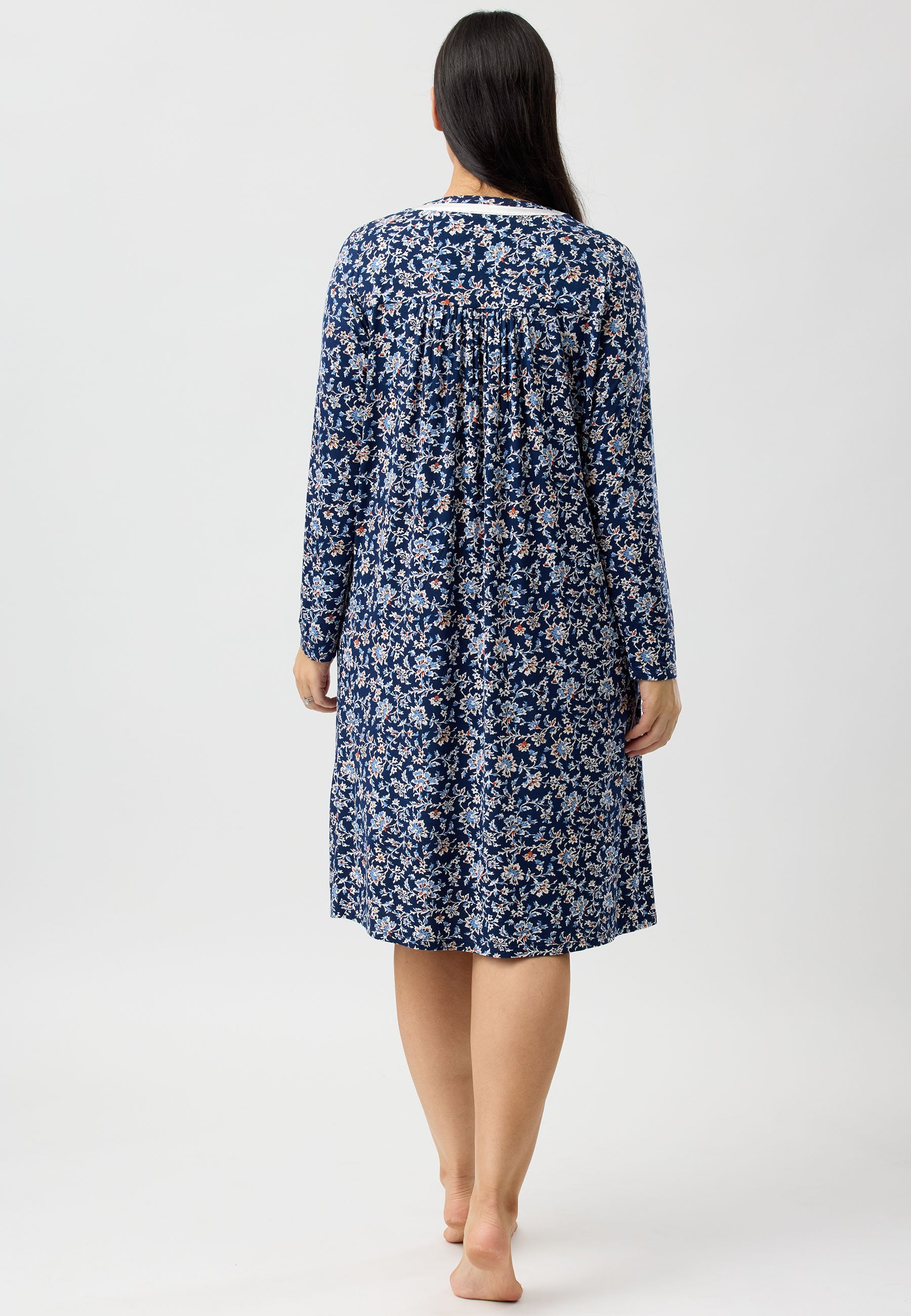 Indulge in luxurious comfort with the Java Nightie. The abstract print adds a touch of artistry while the ivory satin trim on the vee neck elevates the design. Crafted from silky soft viscose jersey, this nightie will envelop you in ultimate softness. Experience a truly exclusive sleepwear experience.