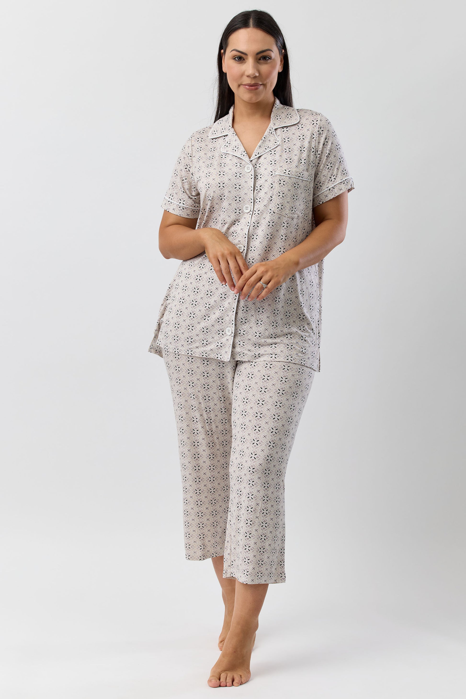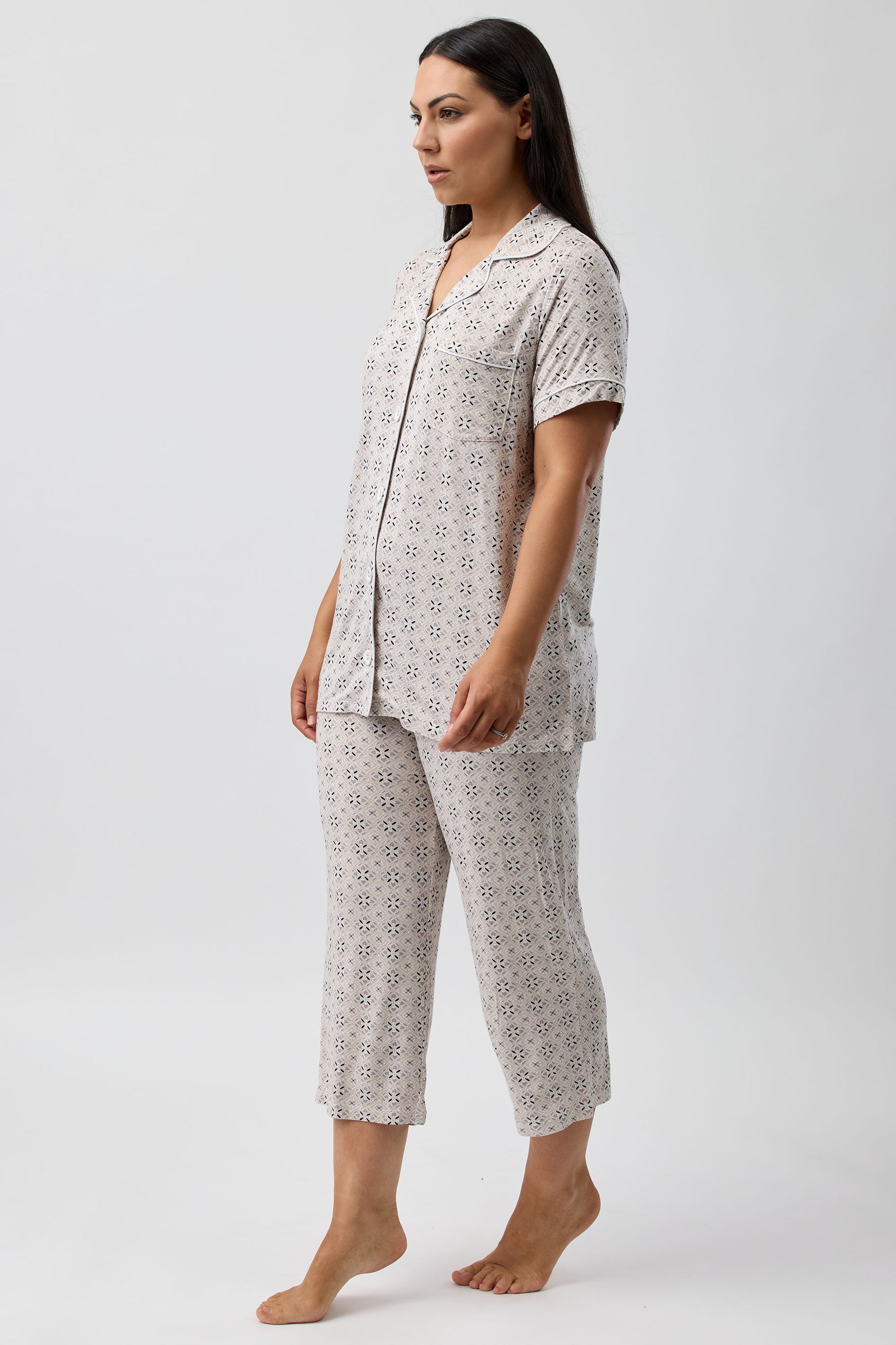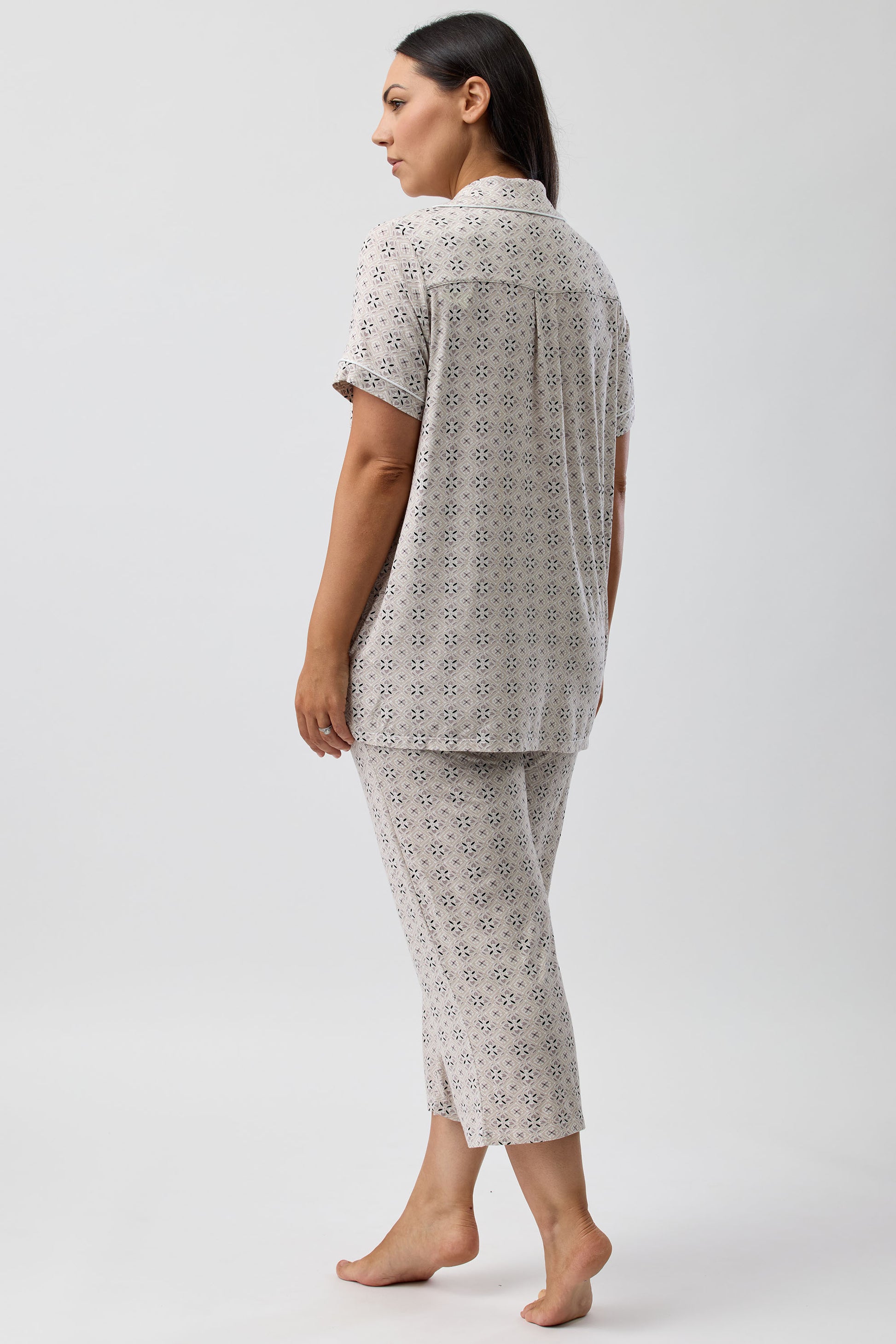 The Kenya Revere PJ Set combines luxurious comfort with refined details. Made from silky, soft viscose jersey, these pyjamas feature a stylish batik print, contrast-coloured covered buttons, and piping for a polished look. The soft elastic waistband on the pants ensures a comfortable fit, making this set perfect for elegant lounging and restful nights.